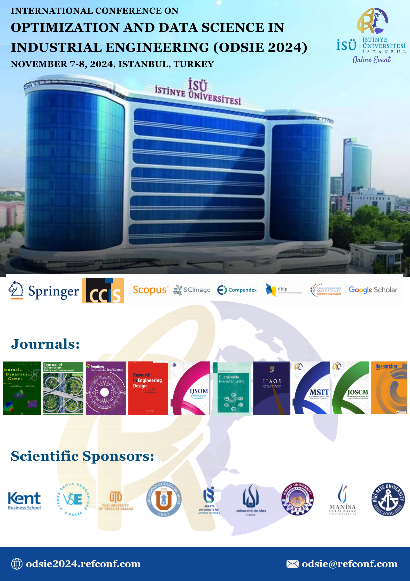 Organized in collaboration with Istinye University in Istanbul, ODSIE 2026 will be held in a fully virtual format, bringing together academics, researchers, educators, industry professionals, and students from around the world. The conference aims to provide a platform for exchanging knowledge, sharing experiences, and presenting the latest theoretical and practical advances in optimization and data science within industrial engineering, encompassing both scholarly research and real-world applications.